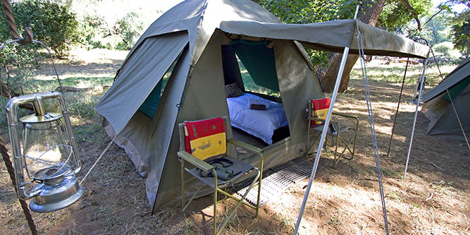 This mobile camp consists of walk-in tents with comfortable camping beds, en-suite eco-toilets and separate bucket showers. At night, light is provided by a lanterns and a crackling fire.
